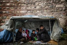 A Syrian family run in a forest in Macedonia after illegally crossing Greek-Macedonian border near the city of Gevgelija. Some 50,000 people, many of them fleeing the war in Syria, have been stranded in Greece since the closure of the migrant route through the Balkans in February