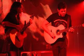 Nepalese people lit candles to create the shape of historic nine-storey Dharara tower and Kasthamandap temple to mark the first anniversary of the 2015 earthquakes at Bashantapur Durbar Square in Kathmandu, Nepal