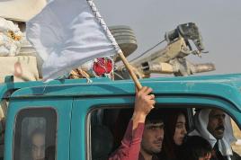 Kurdish Peshmerga forces fire a rocket toward Islamic State militants on the southeast of Mosul , Iraq