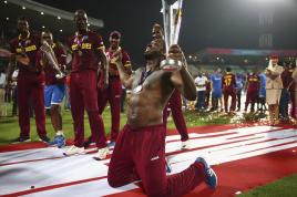 A jockey takes part in a traditional cattle race or "Pacu Jawi", to mark the end of the rice harvest in Tanah Datar, West Sumatra, Indonesia