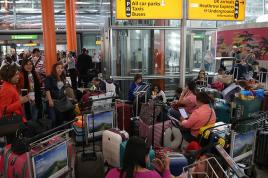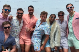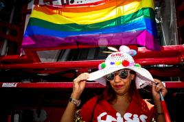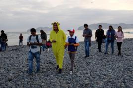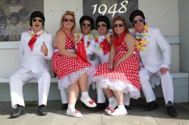 Revellers chat on Havana's Malecon seafront before performing at a carnival parade, Cuba