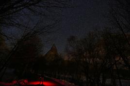 A meteor streaks past stars in the night sky above medieval tombstones in Radmilje near Stolac, south of Sarajevo, Bosnia and Herzegovina