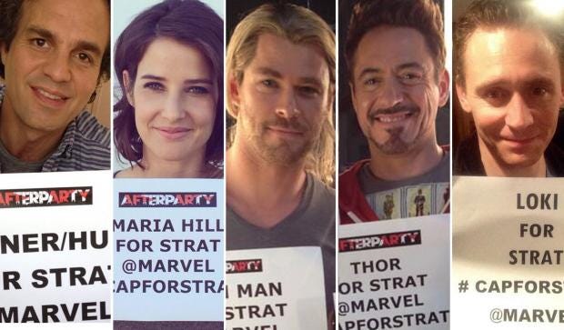 The #CapForStrat campaign was also shared by ordinary fans around the world – but Ms Caldecott explained that they didn’t reveal it to her father until Marvel had got in touch.