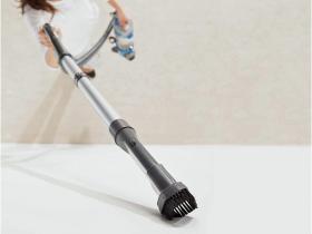 The bagless PowerPro is a good all-round performer, with impressive results on carpet and hard floors and with pet hair, for instance. It’s lightweight – at 5.5kg, it is one of the lightest on the test. It comes with three different floor attachments including one for parquet as well as the standard dusting, crevice and upholstery nozzles.