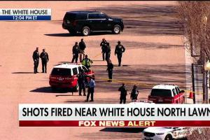 Members of security services react as a man in the crowd tries to shake hands with French President Emmanuel Macron, who walks next to Senegalese President Macky Sall in a street of Saint-Louis, Senegal.