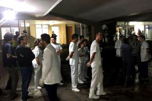 “We are living in a daily horror movie,” Oussai Alali, a nurse at one of east Aleppo’s destroyed hospitals told The Independent, sending pictures of him and other workers sitting in the rubble.