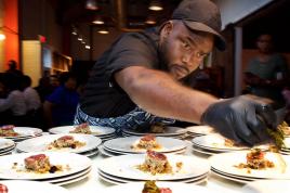 A police officer walks by the front of a Chicago Pizza and GLHF Game Bar at the scene of fatal shooting at The Jacksonville Landing. A gunman opened fire at a video game tournament killing multiple people and then fatally shooting himself in a rampage that wounded several others