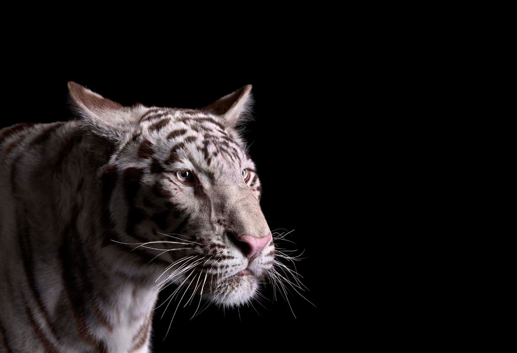 Set against a black backdrop, the portraits force the onlooker to examine the textures and colours of the animal’s hide and shape, free from external distraction.