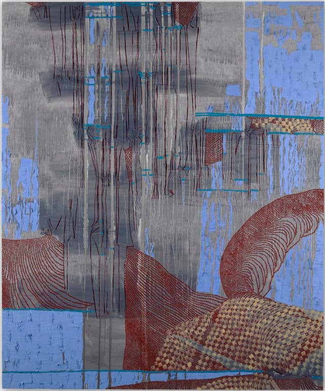 The doglegs, beelines and chicanes are part of an idiolect used by the artist to categorise the marks which emerge from the randomness of the paint she hurls around. “There’s an animal theme, they’re dogs, chickens and bees. It sounds a bit random but there is an underlying logic, an esoteric one, which is all about finding routes from one place to another,” she says.