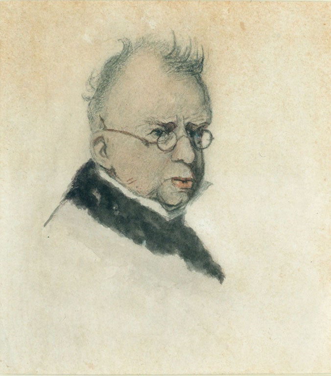 Asia House calls the exhibition The Flamboyant Mr Chinnery, and promotes it with a picture of the artist painting an army sitter that is in a caricature style that owes much to George Cruikshank. It does Chinnery a disservice. To his contemporaries, true, he had the reputation of a rake, a good drinking companion fond of the high life, women and wit. But although he painted some jokey scenes of his studio to give himself a bit of a dash, caricature wasn't really his style. His sketches and their accompanying notes in shorthand show a serious artist, deeply committed to his craft.