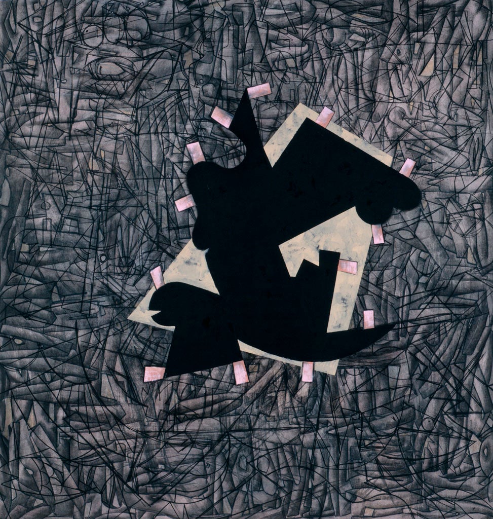 Von Heyl first exhibited in the early nineties in her native Germany but moved to New York in 1994 where she now has three studios– two dedicated to painting, and another for drawing and printmaking. All the work is created in the studio by hand but her recent style is inspired by the digital age.