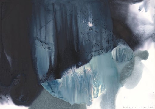 In a few cases Richter applied lacquer to one side of the sheet, or drew pencil lines across the patches of colour, marking particular moments in the flow of shapes. This contemplative game with inks, with Richter leafing forwards and backwards through the sheets, produced twenty-seven two-sided works that follow in a sequence determined by their making. As so often in his long career as a painter, Richter was initially wary of the outcome of this process, set the ensemble aside and postponed his final judgement on it.