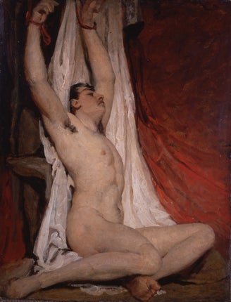 It gets even more problematic when you come to the studies he made of the nude. All his life Etty attended, often alongside Constable, the life classes at the Royal Academy. He was unusual in his time – although not by later standards – in the extent to which he took models from around him to draw and paint. Many of the studies, such as Male Nude Lying on a Shroud and Male Nude with Arms Up-stretched are frankly homoerotic. Etty never married, saying that children would interfere with his work. With a knowing nod, academics point to the fact that most of his male models were recruited from the baths he frequented and suggest: "We all know what that means."
