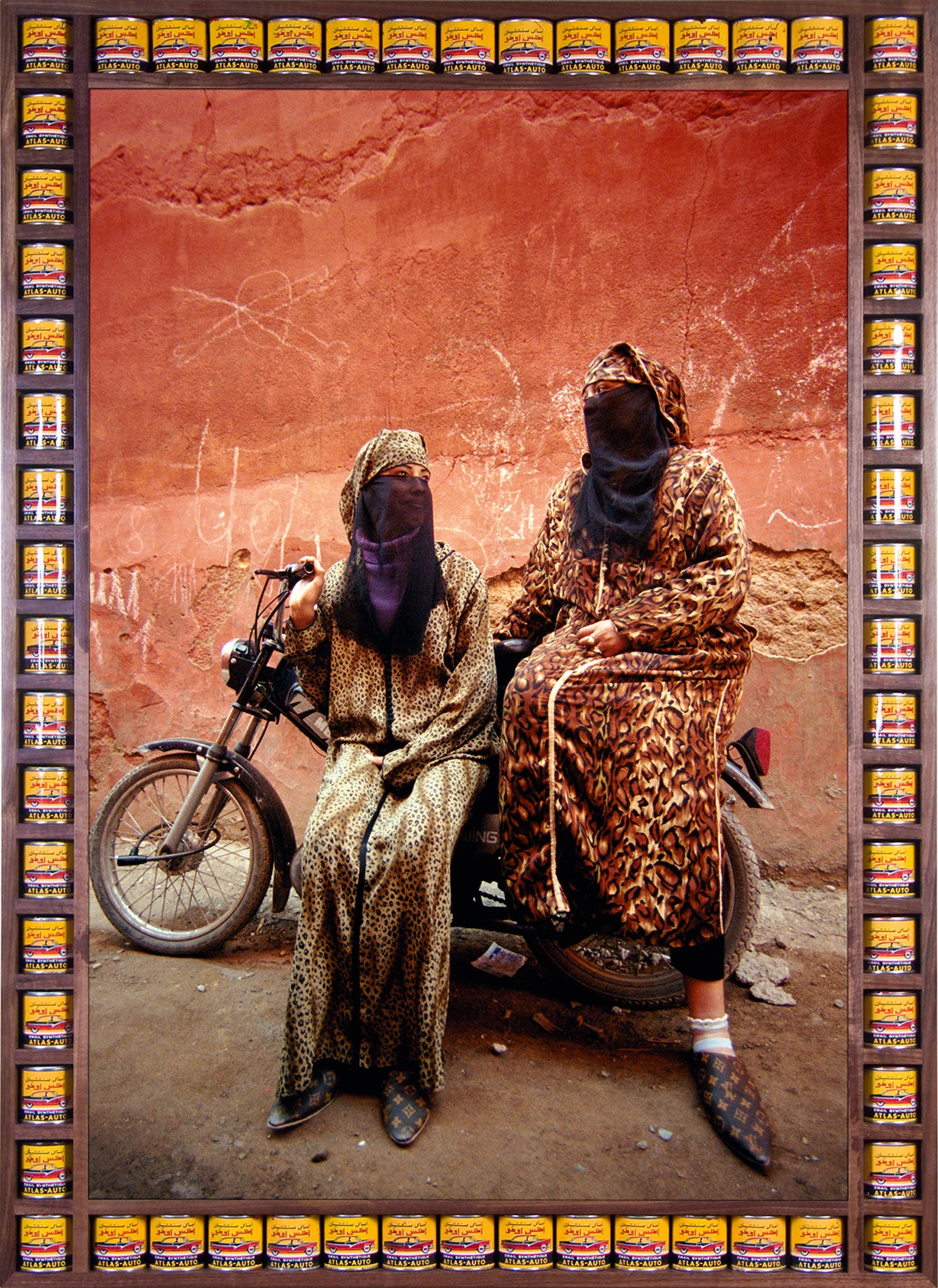 "I build the frames using objects I find in markets," he explains. "Cans of Fanta, tins or boxes of chicken stock… I wanted to use the repetition of the labels in a slightly humorous context, relating to something happening in the photographs, but I also wanted to create repetitive patterns to evoke the mosaics of Morocco in a modern context."