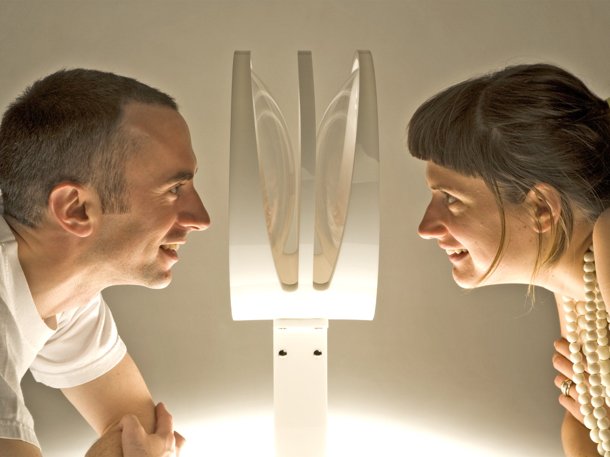 The works are the product of the industrial design course at Central Saint Martins College of Arts and Design. Jim Rokos is a graduate and the brains behind the mouth-swapping mirror.
