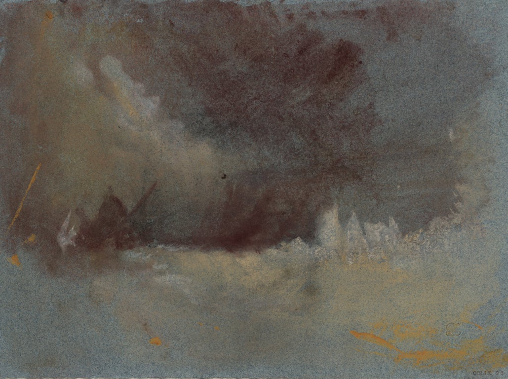 With "fire" it is the same. The paintings start with the depiction of the event, the eruption of Mount Vesuvius, the burning of the House of Commons. But by the end it is the colour and energy of the fire itself that obsesses the artist, while with "water" and "air" the progression from observation to pure sensation is even more complete.