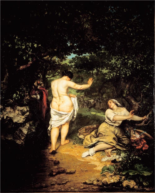 "Realism" was his slogan. The newly coined term was already rich in meanings. It meant sticking to the real world ("I cannot paint an angel, for I have never seen one"). It meant not beautifying. It meant low-class, provincial subjects. It meant a dense, thingy, way of painting. But in Courbet's hands it involved both an affirmation and a negation. The subject is presented with unbudgeable material sturdiness. But there's a refusal to make the scene fully available to the viewer.
