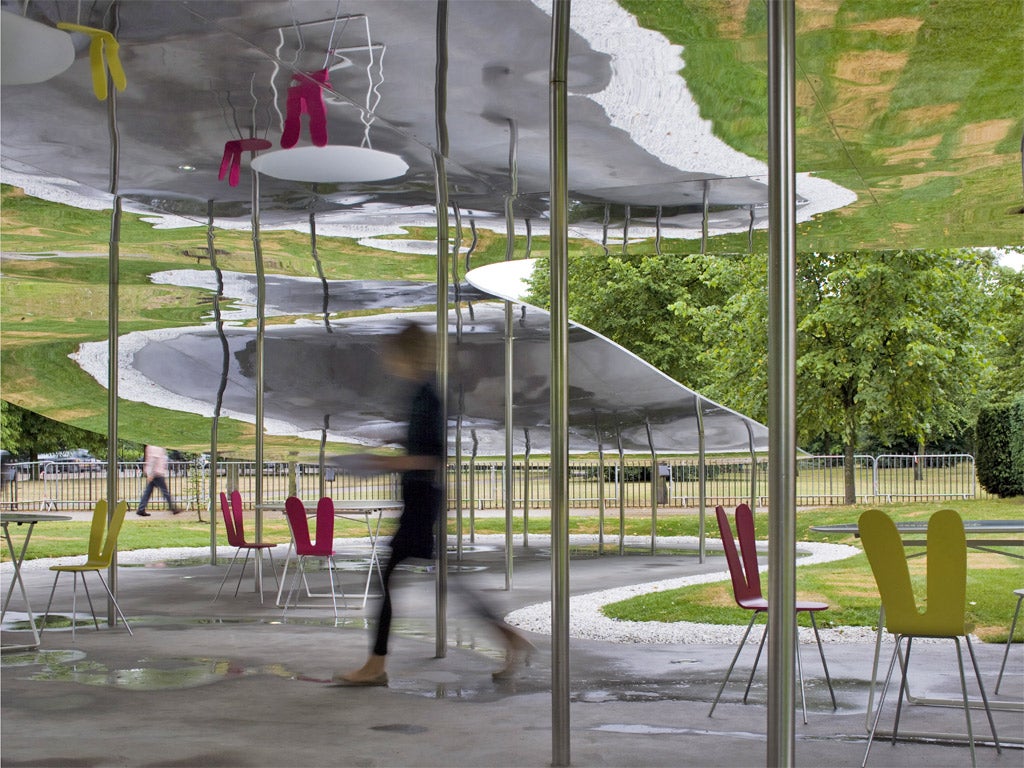 * The 2009 installation, designed by Kazuyo Sejima and Ryue Nishizawa, included a reflective roof, similar to that planned for this year's work.