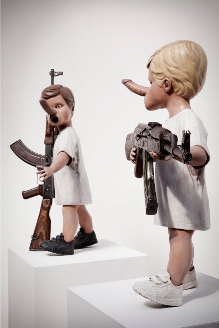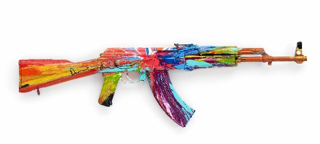 Artists such as Jake and Dinos Chapman have customised AK47 assault rifles to highlight a global ceasefire movement.