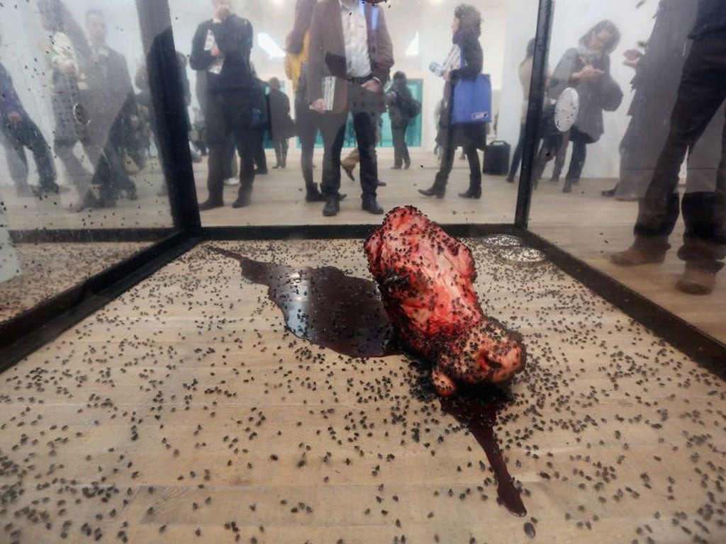 Visitors will be assaulted by the smell of dying flies and a rotting cow's head in A Thousand Years (1990), where flies emerge from maggots, eat from the animal's head and die on an Insectocutor.