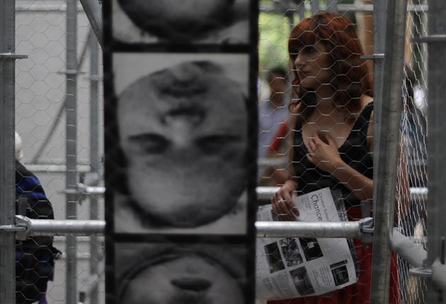 Christian Boltanski is an unpredictable artist, sometimes wonderful (his Tasmanian gamble with death), sometimes dreadful (his piece for Monumenta 2010). His work in the French Pavilion is Boltanski at his best, a printworks sketched in metal scaffolding and a press running off a belt of babies, their faces ticked off by digital clocks. It is spare and elegant, also funny – you can stop the machine by pressing a button, then on it whirrs – and scary: Boltanski's baby-factory is a portrait of our Darwinian drive to extinction. Its horror lies in its lightness of touch, a sense of the artist looking at Man's will to over-populate and shrugging.