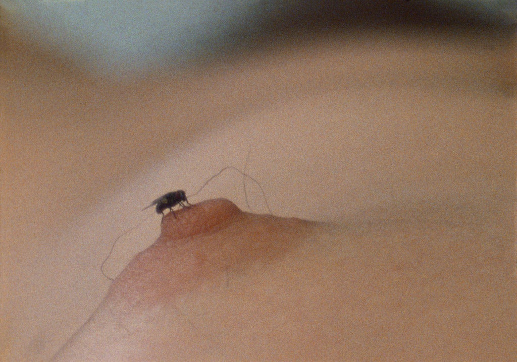 The really strong works here are those that don’t have this knowing profundity – Film No.4 (Bottoms) (1967) is a film of different buttocks, their creases creating a cross on the screen. The butt cheeks of the various subjects seem to nudge and kiss one another in a sweet, jolly fashion as they move their legs up and down. Fly (1970) in which fruit flies explore a woman’s naked body, is equally compelling, giving us the perspective of a tiny, light creature on the alien landscape of the body. Both of those works give us an alternative vision of the world, rather than easy answers.