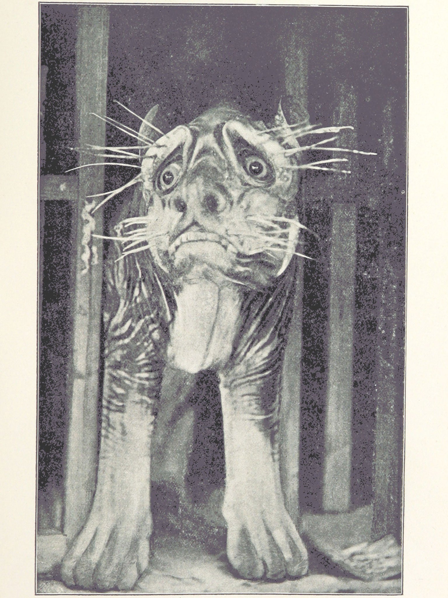A “sacred” Chinese tiger drawn in a 19th-century travelogue, a photograph of a “typical” American student in 1894 (with “stooping head, flat chest and emaciated limbs” ) and an etching satirising the sale of gin.