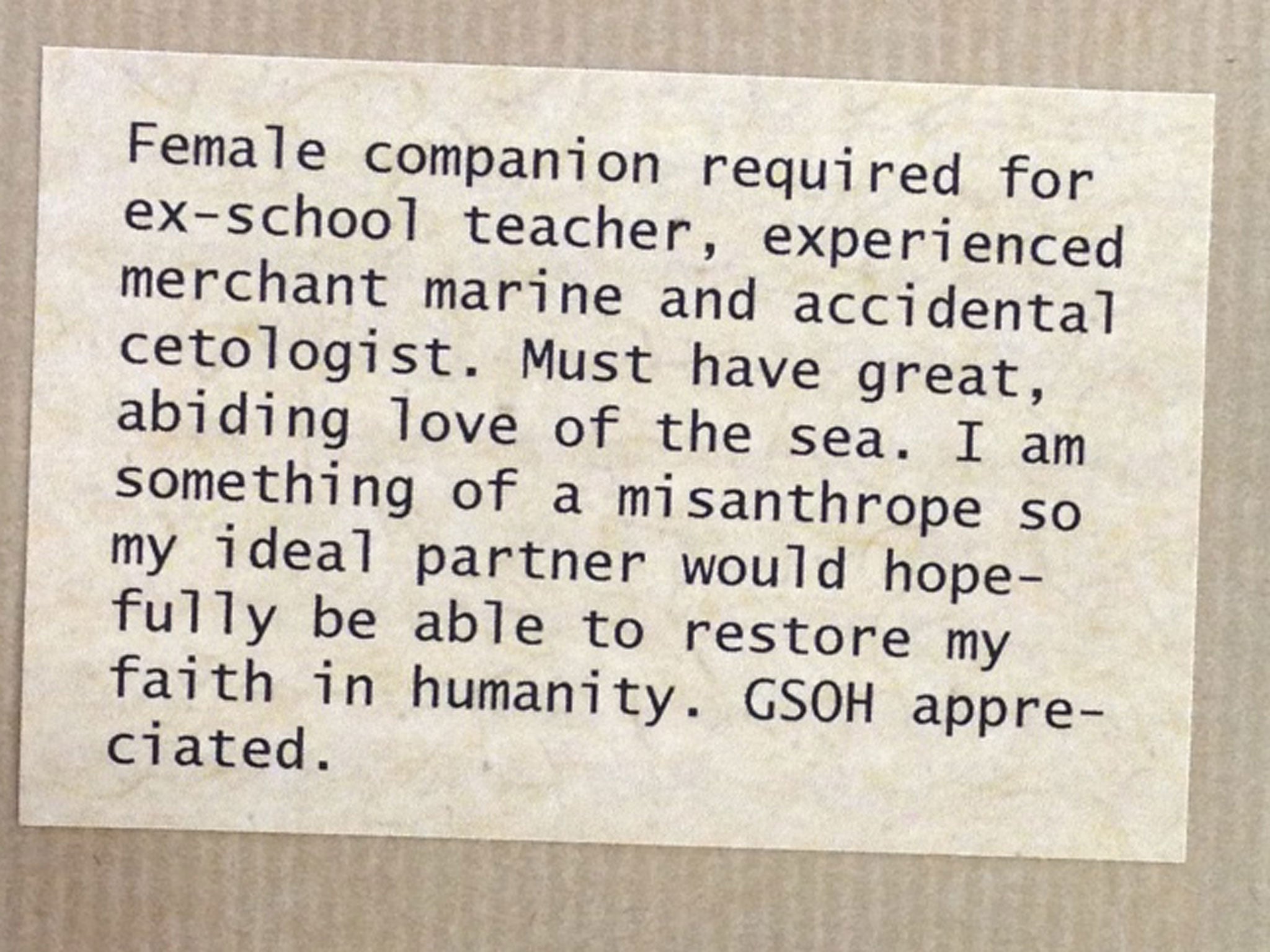 The booksellers, Gary Perry and Rachel Darling, say that recommending a book to a customer is a big responsibility, a bit like setting them up on a blind date, which is what gave them the idea. "We took it upon ourselves to reduce some of the best-known and well-loved novels in our arsenal to personal ads, written by the book's central character – an appeal to the reader for love and attention. A full selection of titles, wrapped in brown paper with only the attached personal ad to guide the reader, is available at our Charing Cross branch. This proved rather more fun than we'd originally anticipated!"