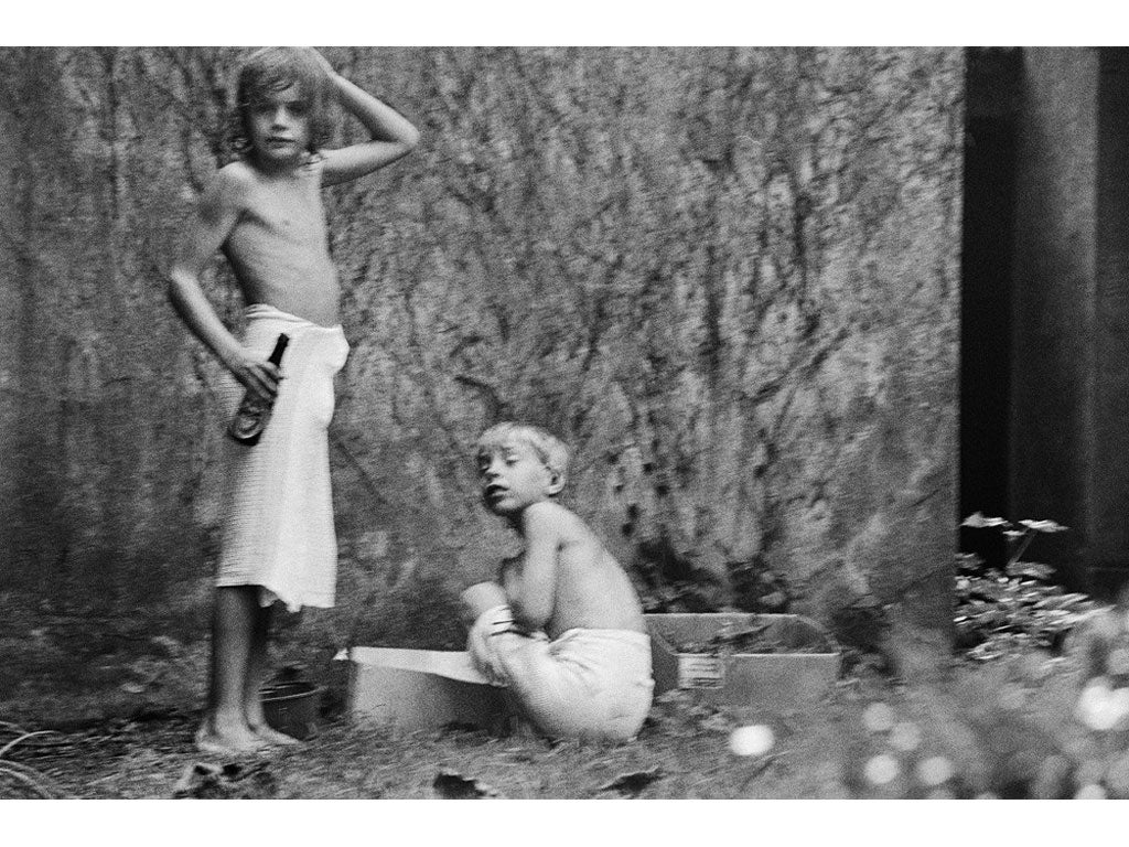 Playful, blissful, and nostalgic, the pictures are full of the joys of spring; of children at play; of bare feet and bell-bottoms; long summer evenings and rural idylls. But there is also a complicated and very provocative tension between innocence and experience. Van Manen's children play up to the camera; trying out adult poses, holding bottles of beer or smoking. And there's no getting around it: there is a degree of intimacy here – or at least, in the shots of her children in the nude – which, in these more sensitive times, seems calculated to make a viewer uncomfortable.