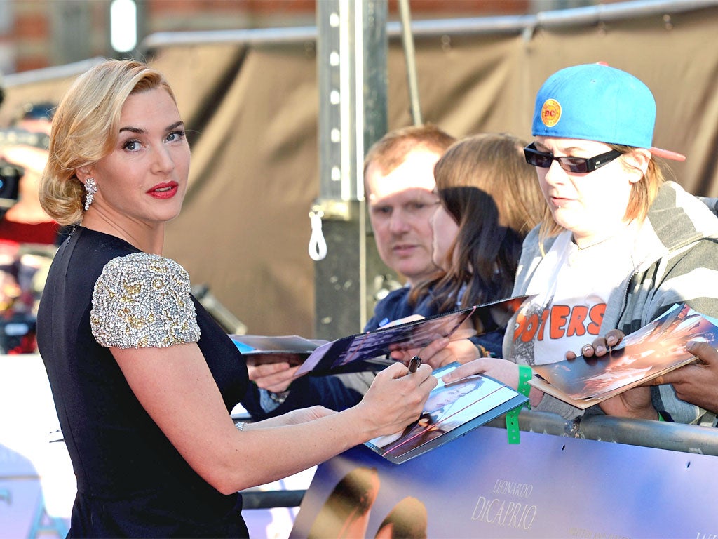 Kate Winslet signed autographs as she walked the red carpet at the re-launch of the film that made her a star.