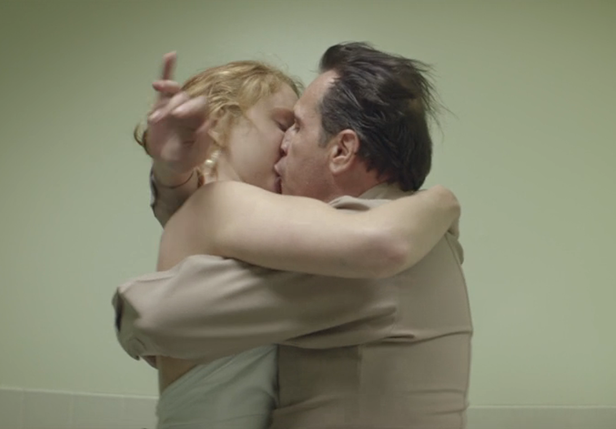 The model plays a promiscuous woman in small town America, who is filmed seducing various locals including a vicar, a mechanic, a pony-tailed old man and a woman.