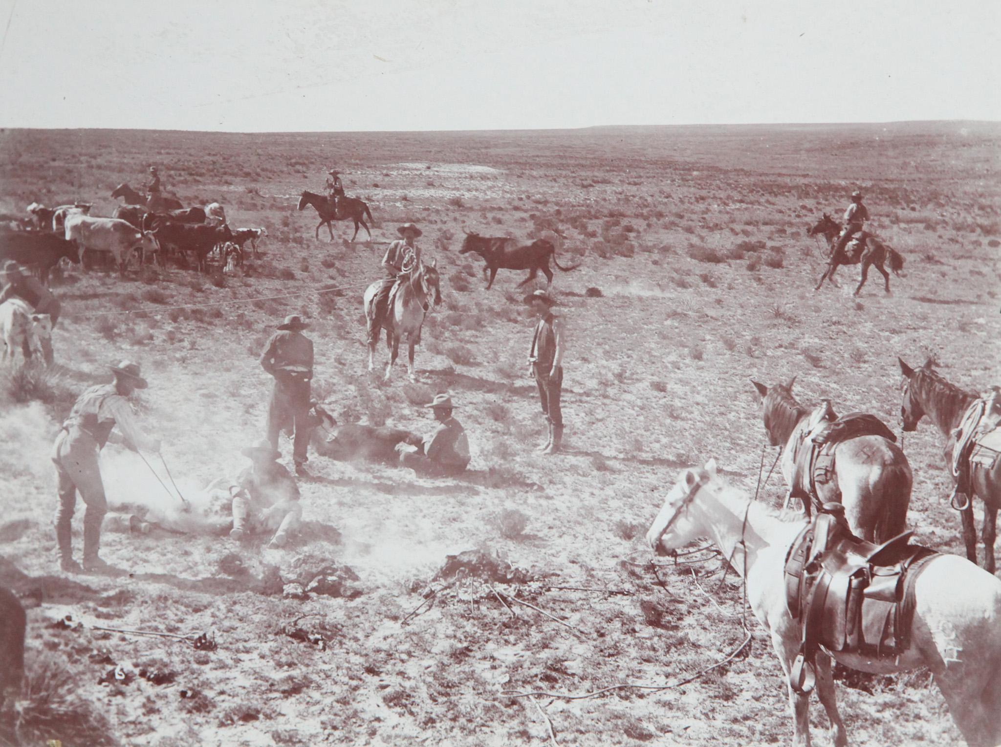 Most of the photos show life on the ranches - herding cattle and riding horses - but they also offer a glimpse of some of the small towns and the newly-built railway.