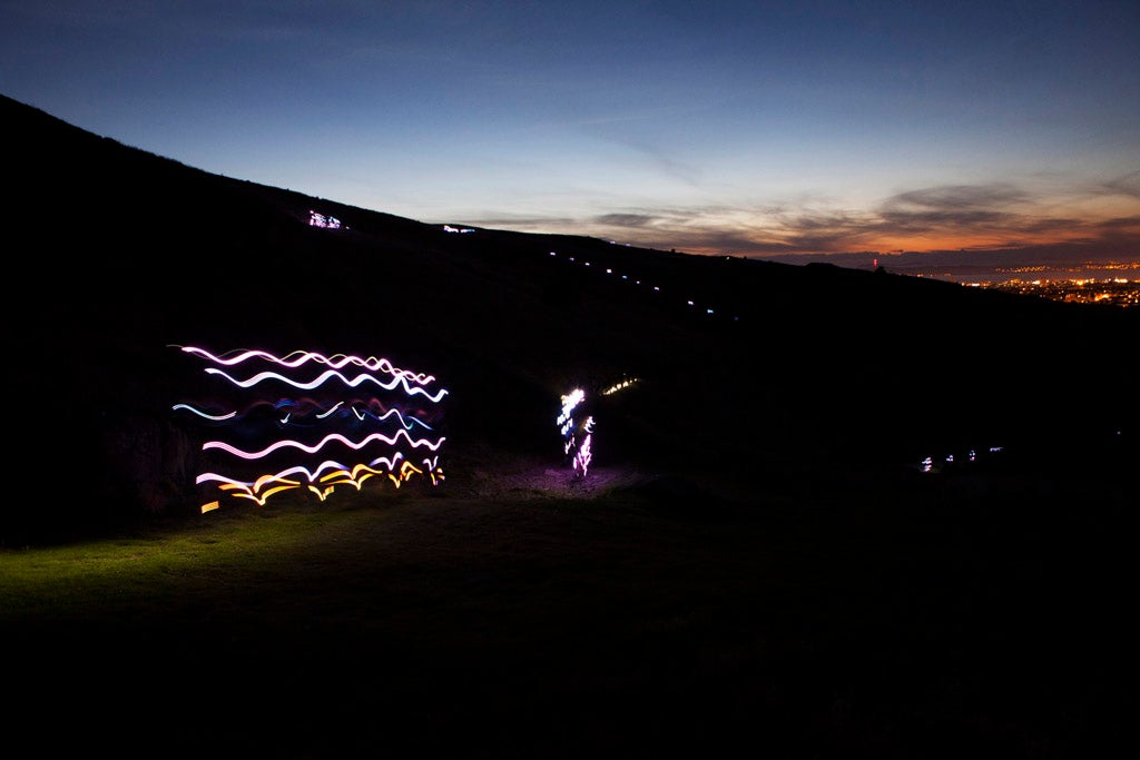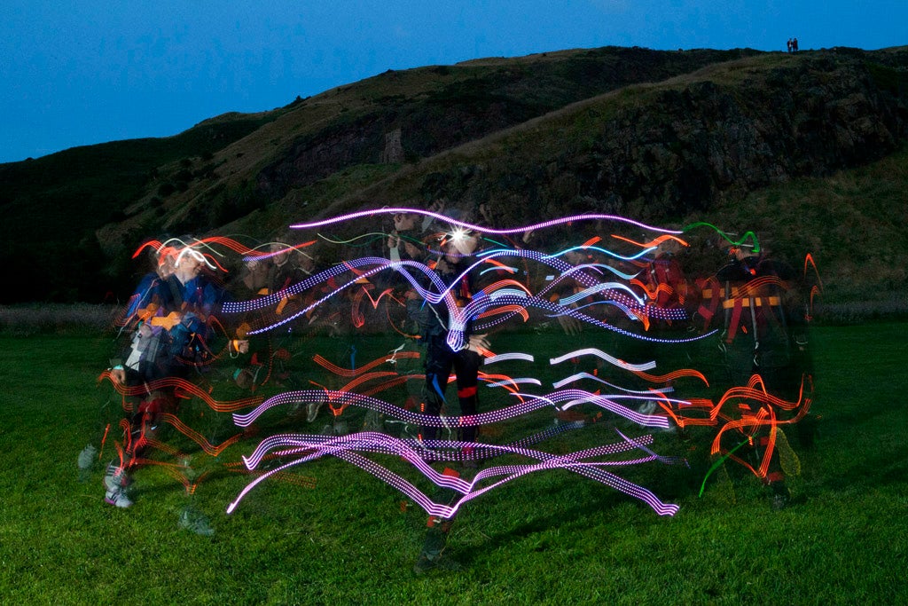 But one suspects that even twice as many runners will struggle to compete with the municipal lightshow of Edinburgh behind, or fill the darkness as dazzlingly as must have been intended on paper. An event in which the audience are both spectators and raw material, NVA’s latest piece sends walkers up Arthur’s Seat in darkness, their way lit by lightsaber-style staffs and the glitter of choreographed runners in light-suits, making patterns against the blackness.