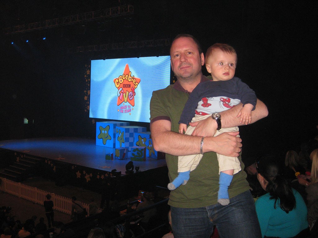 From time to time the life you've always imagined and the life that you actually have converge – and this is one of those moments. We are at London's Wembley Arena patiently waiting for the show to start. To fill the time, I have started to list all of the great acts I can remember seeing here over the years: Stevie Wonder, Earth Wind & Fire, David Bowie, Prince, the Velvet Underground, Talking Heads... Never mind that my son doesn't yet realise the full weight of the history being imparted. He is, after all, only nine months old. And never mind, too, that the reason we are here today is the somewhat less impressive spectacle of a show called CBeebies Live: Reach for the Stars.