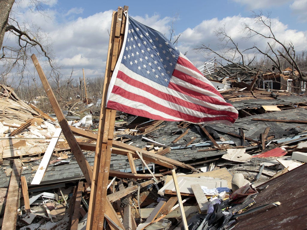 Huge thunderstorms, predicted by forecasters for days, threw off dozens of tornadoes, hitting Kentucky and Indiana particularly hard. Twisters that crushed entire blocks of homes knocked out mobile phones and landlines alike, ripped power lines from broken poles, and tossed cars, buses and lorries on to roads made impassable by debris. The known death toll is 37, but the scale of the devastation made a quick assessment impossible.