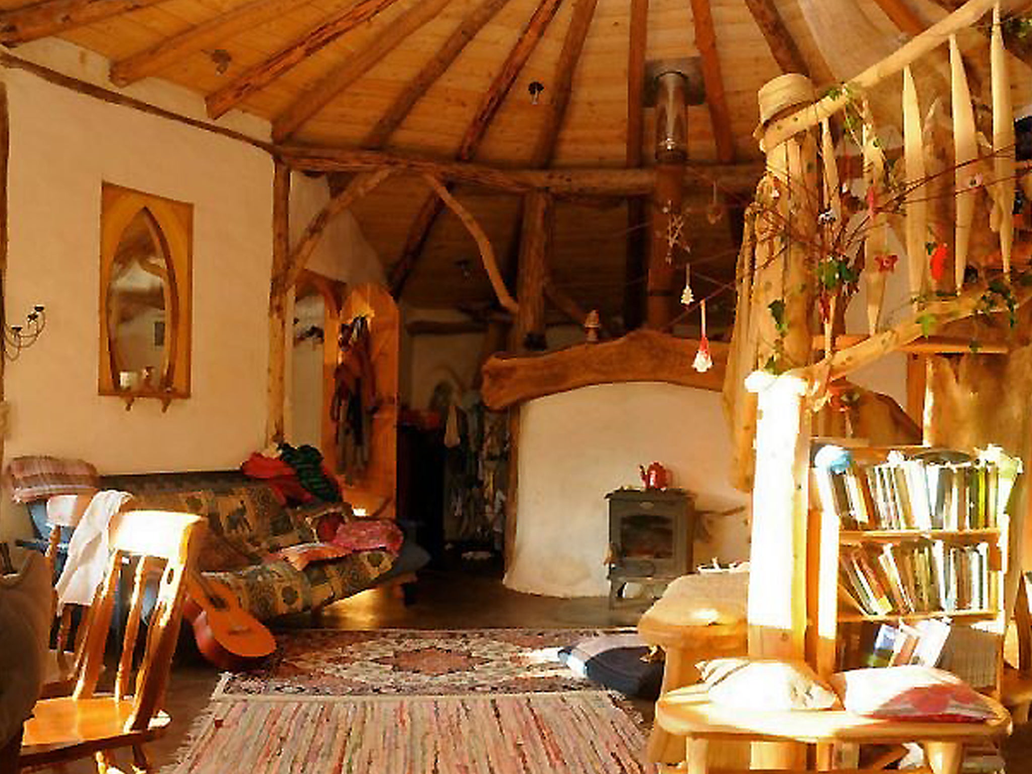Sculptor Charlie Hague and his wife Megan Williams spent nearly a year creating their wooden roundhouse on private family land in Glandwr.