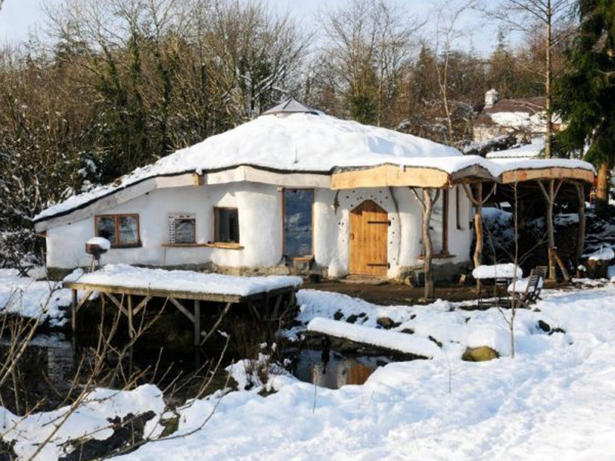 The single story building, fashioned with a reciprocal green roof and lime plastered straw bale walls cost £15,000 to construct and was completed just in time for the couple's first child allowing them to move out of the damp caravan where they had lived for the previous four years.