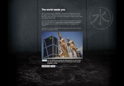 The single-page website features images of mannequins bearing the Chinese symbol for water - ? 'Shui' - in famous locations around the world. Visitors to the site are then encouraged to support the water-related, but as-of-yet unspecified campaign by making the symbol their profile picture on social networks.