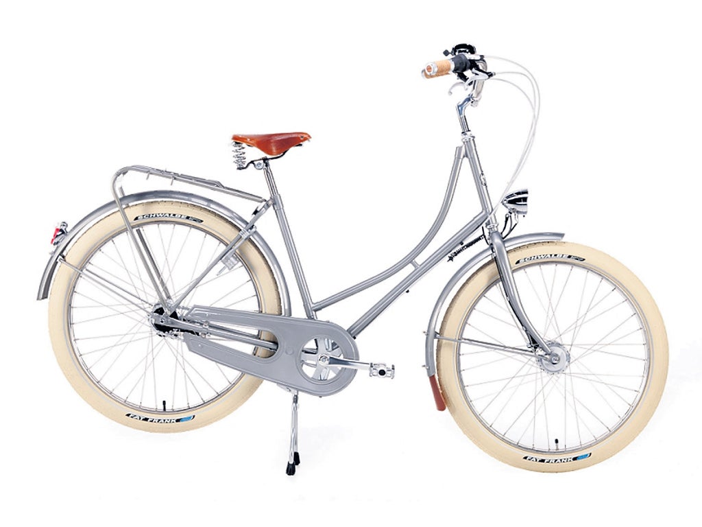 Updates the sit-up-and-beg style for easy city cycling. Virtually indestructible frame, essential mudguards and dynamo-powered lights. Handy balloon tyres.