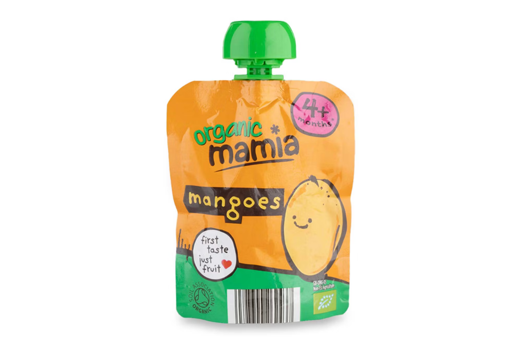 For babies around six months onwards, this pouch is made from organic mango puree and a small amount of fruit juice. It’s an ideal snack for kids while you’re on the go.