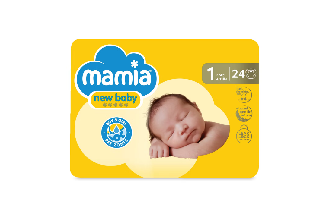 These Mamia nappies are great value at just 3p each. This particular packet of nappies is size one, which is suitable for newborn babies between 2-5kg. They also promise to provide 360-degree leakage protection.