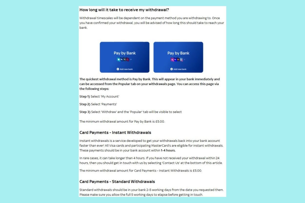 If you can’t do Pay By Bank, all Mastercard debit customers can also get withdrawals paid within an hour of being approved.