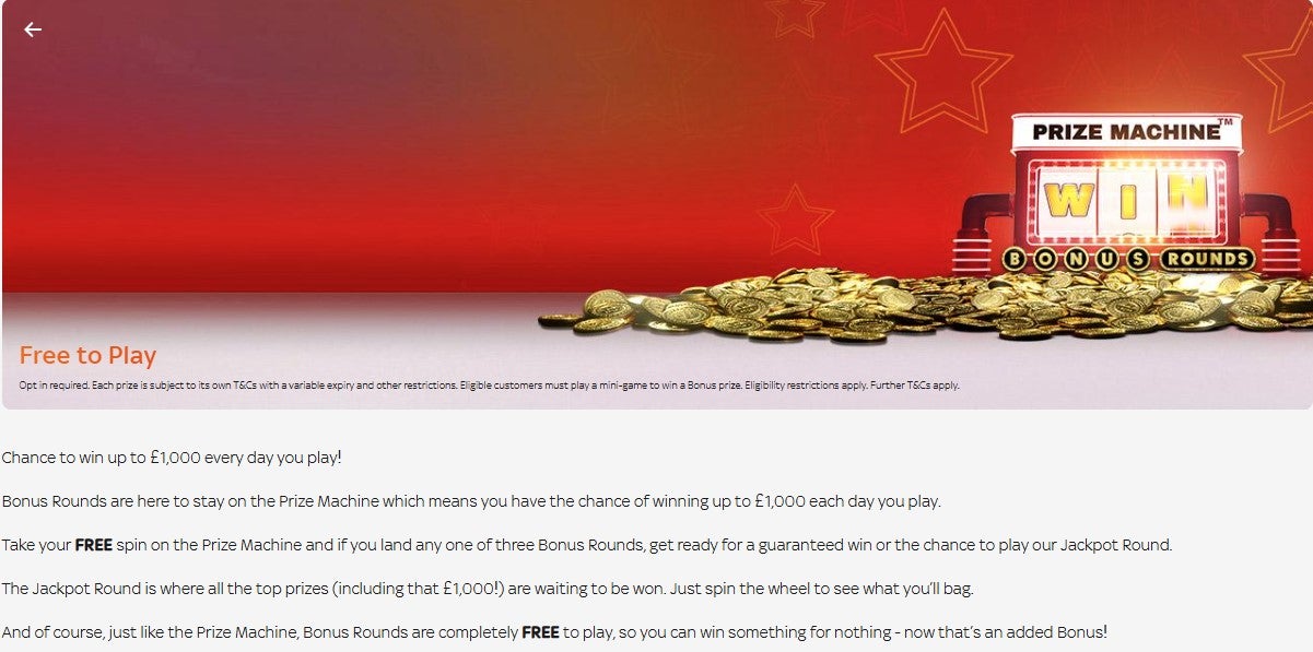 To top it off, players get a shot at winning £1,000 each day from the Sky Vegas Prize Machine, which is free-to-play and also features secondary prizes such as free spins, free bets and more.