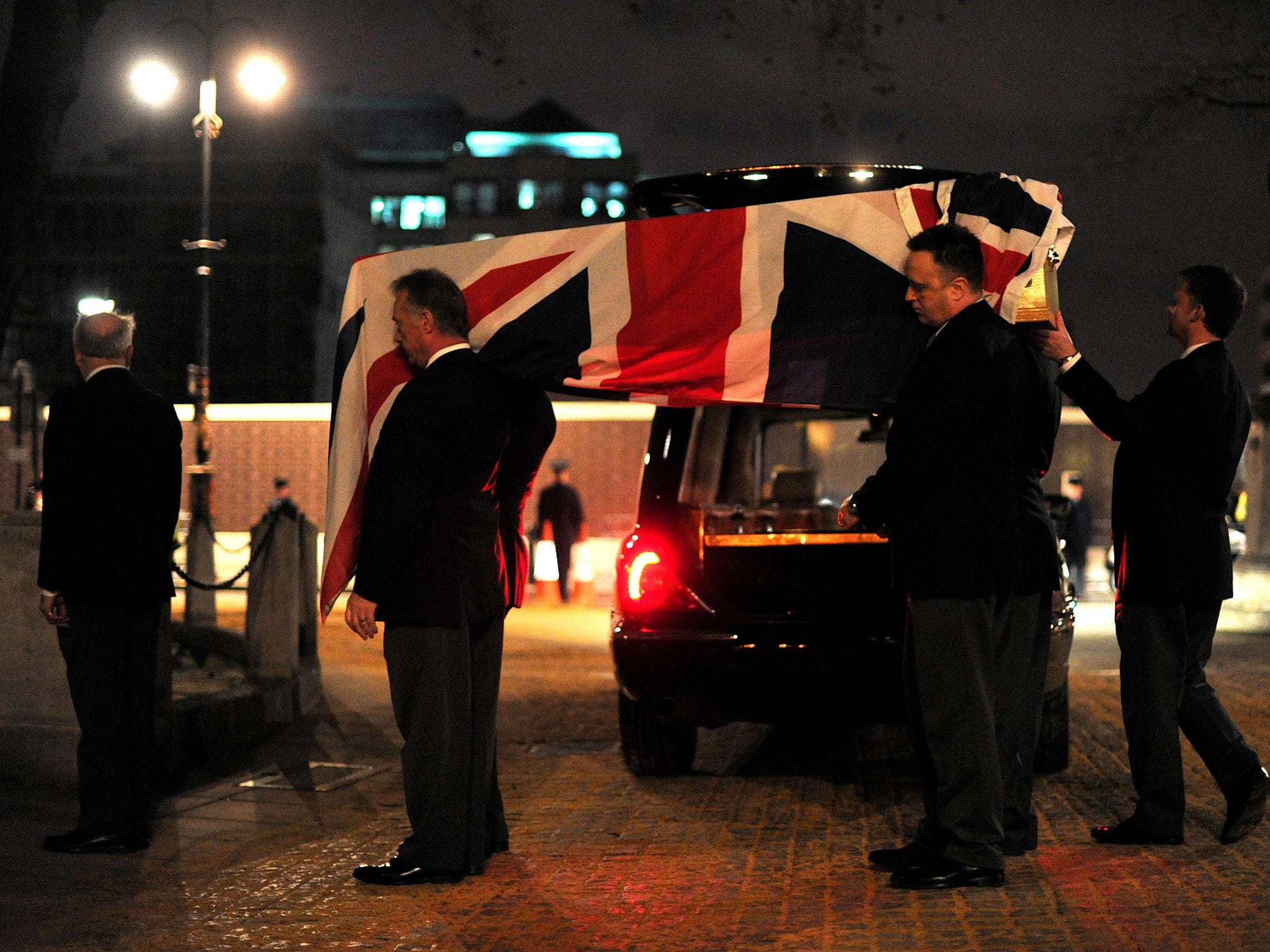 More than 700 serving Armed Forces personnel gathered in central London before dawn as a Union flag-draped coffin was carried on a horse-drawn gun carriage from St Clement Danes, the church of the Royal Air Force, down the Strand to St Paul's Cathedral.