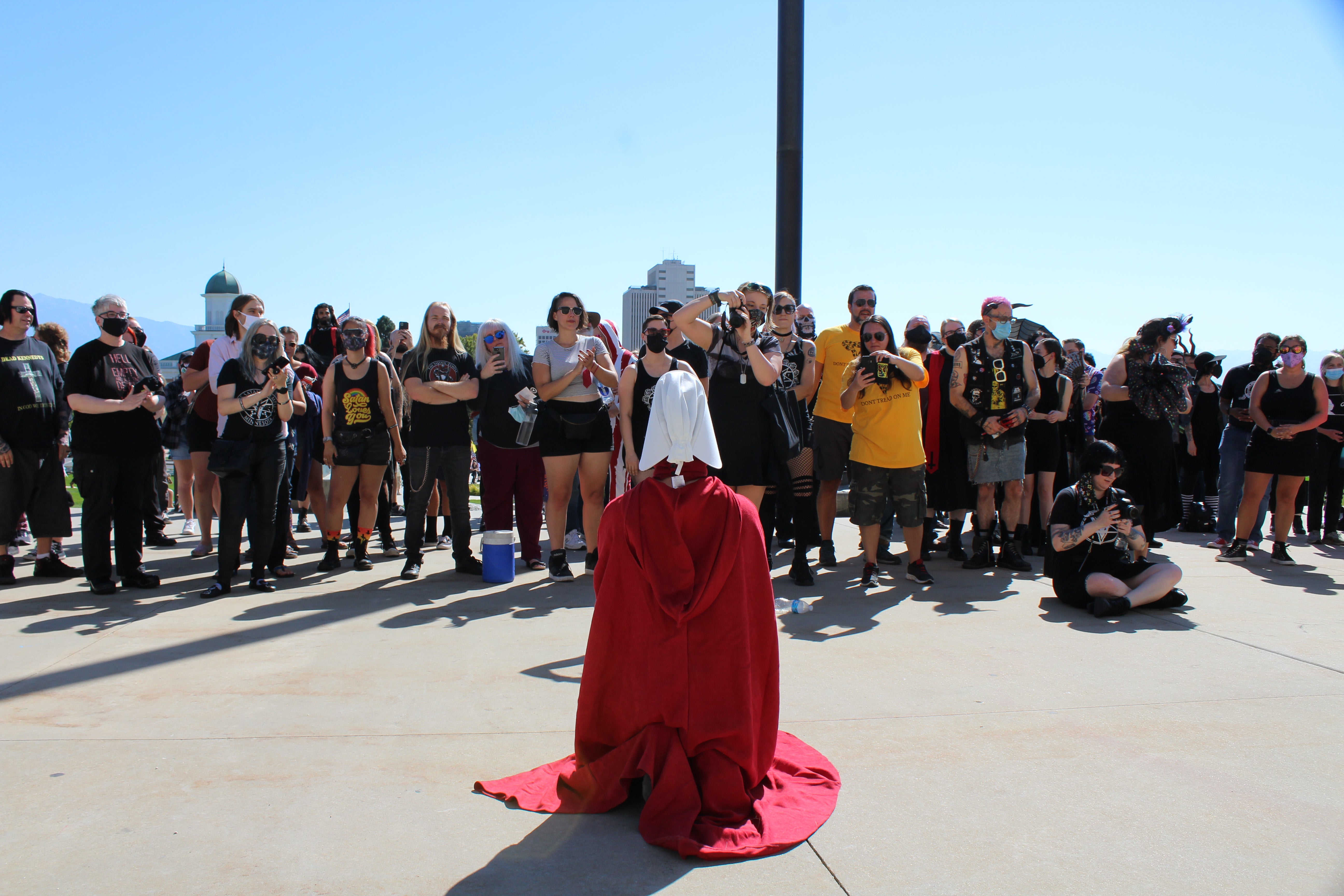 It wasn’t your parents’ protest. Around 200 supporters showed up to the Utah Capitol grounds, most dressed in black. Some wore cloaks and held up signs with messages like “Abort the patriarchy” and “My body, my temple,” while others made a statement donning horns and macabre masks. Around a bustling merch table that featured logo-emblazoned T-shirts and flags, plans were shared to hit up Licentia, the official afterparty, which was billed as a “salacious celebration of bodily autonomy, choice and freedom.”