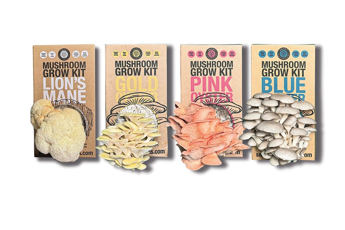 Each compact kit arrives ready to sprout, producing beautiful clusters of mushrooms in around 14 days. Choose from blue, pink or gold oyster mushrooms. Simply open, spray with water and watch nature do its thing, with up to three harvests per kit. Sustainably grown on recycled materials and packaged with care, Smart Mushrooms’ products turns curiosity into a feast.