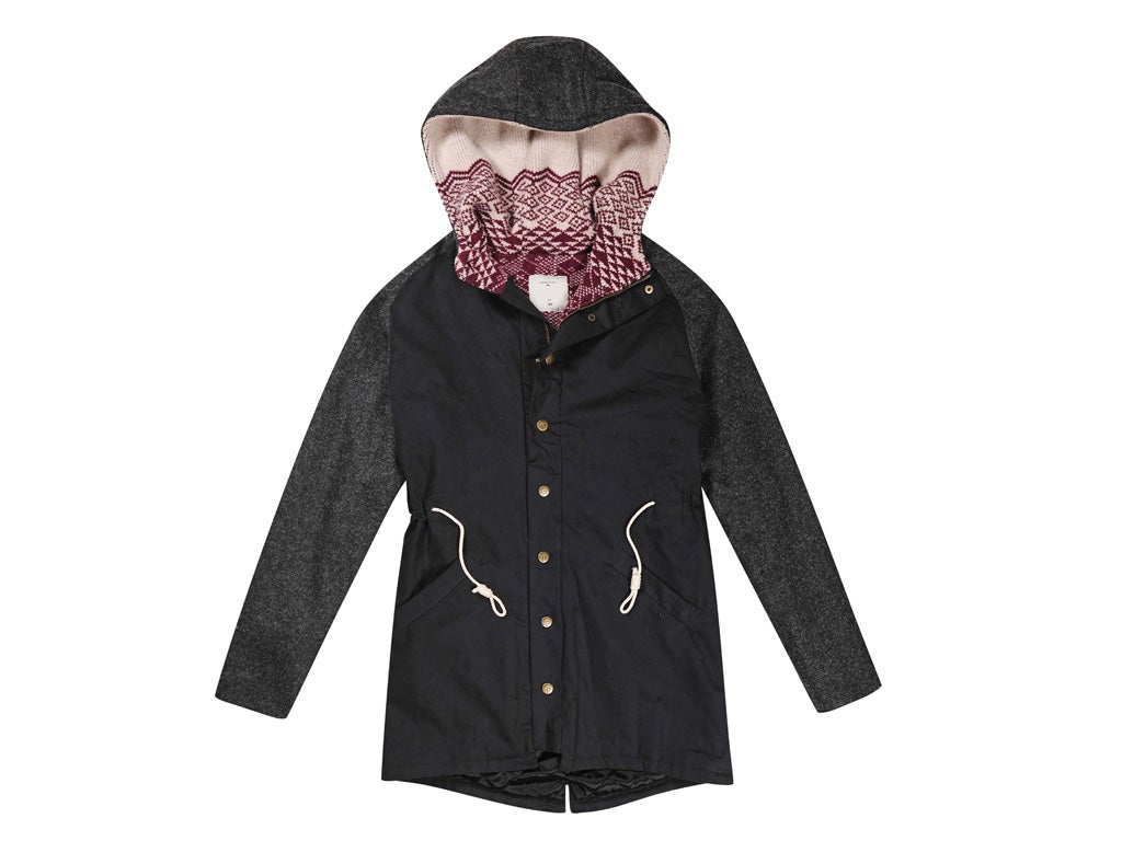 Outerwear is one of the label's strongest suits. Pea coats, parka jackets and waxed short macs are enlivened by linings and patch pockets in contrasting floral prints or woollen tweeds. Knitwear and shirts are also modern classics largely cut from a primarily neutral palette of sands, rusts, greys and navy, emphasising bright flashes such as the vibrant "Piccalilli" yellow jumper.