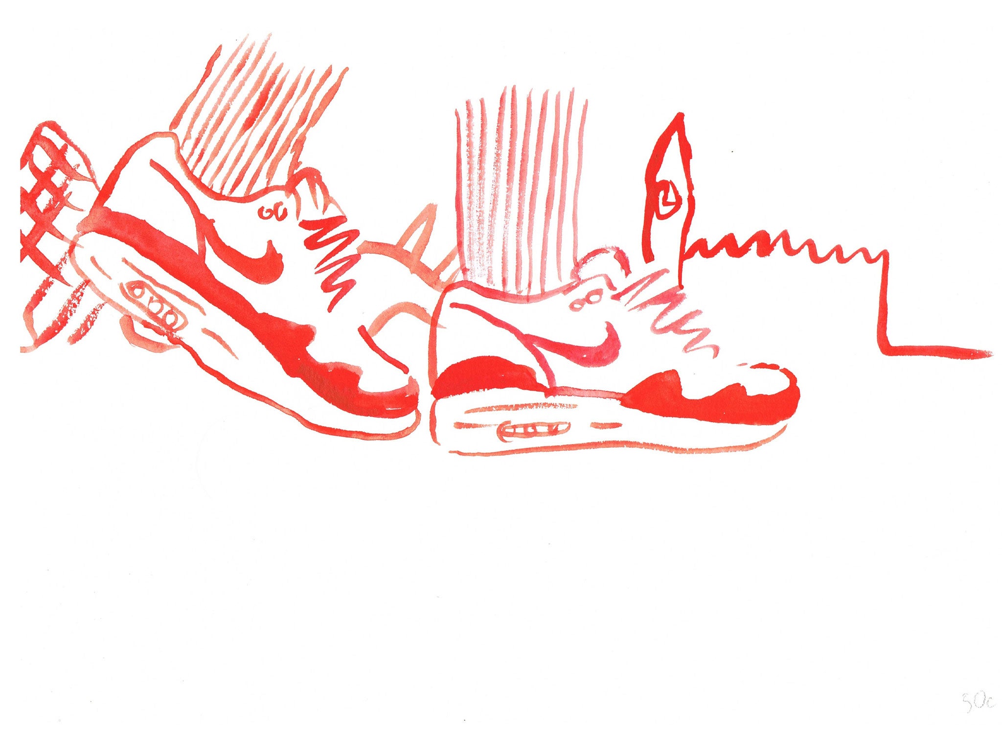 Animator Matt Box was charged with interpreting the Air Max 1, and his hand-painted watercolour shows the 1980s running shoe in all its glory, still sitting comfortably in modern culture.