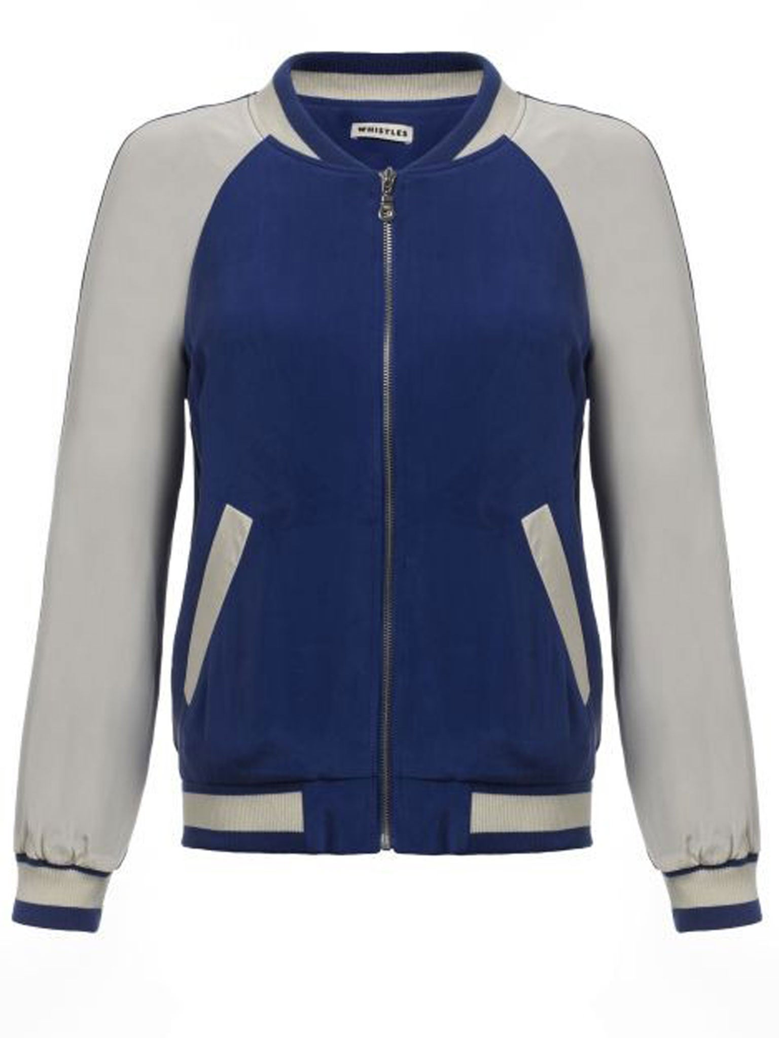 At Whistles, a wintry version in myth-busting navy and black came with an optional initialling service, customised with Varsity letters to spell out your monogram – all very Frenchie from Grease. And why not? Hers was a winning look – the baseball jacket is nothing if not studiedly cool. That's just what happens when things get a little androgynous. The dropped shoulders, the volume, the casual smartness of it: all conspires to make the baseball jacket the only outerwear option this season, so forget about the little league players and take one out to the ball game with you.