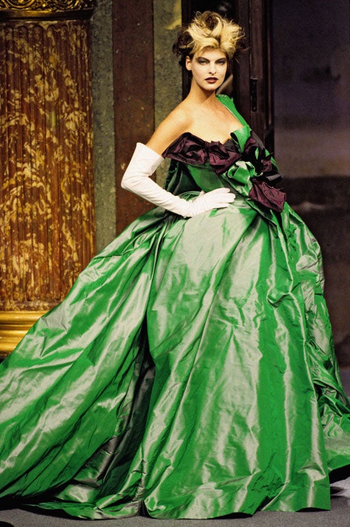 The show is the first to be located in the museum's newly redesigned fashion gallery. Around 100 outfits from the museum's permanent collection are presented chronologically around its circumference and they are testimony, if ever any were needed, that there's nothing like a short, sharp edit to make fashion history sing. Around 50 per cent of the ballgowns in the show are owned by the V&A also and the rest have been lent or donated by hardened ballgown lovers from Joan Collins (a pastel-pink, flower-strewn meringue designed by David and Elizabeth Emanuel) to Rosie Huntington-Whiteley (more narrow and contemporary: Burberry, Antonio Berardi).